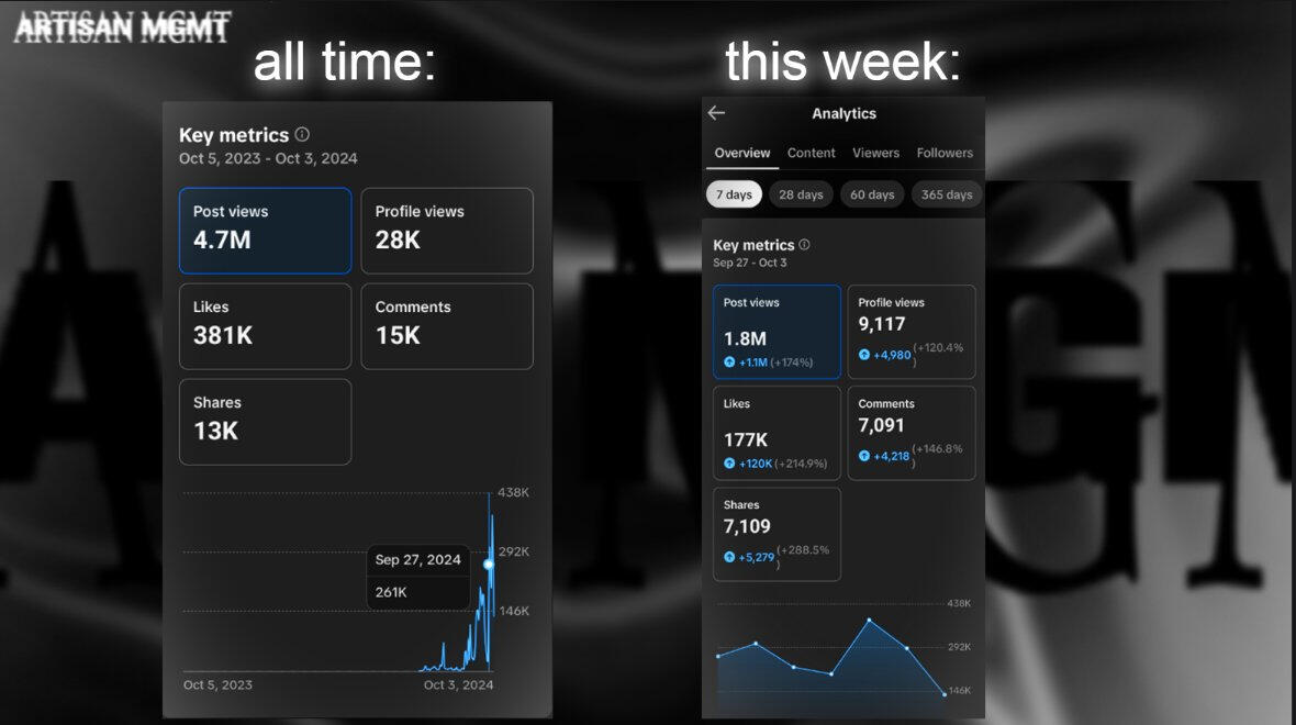 In the summer of 2024, clip accounts were created under a youtubers likeness. We have since grown those accounts in the past year to millions of views and amassed 40k+ followers. Picture is around 2 months in